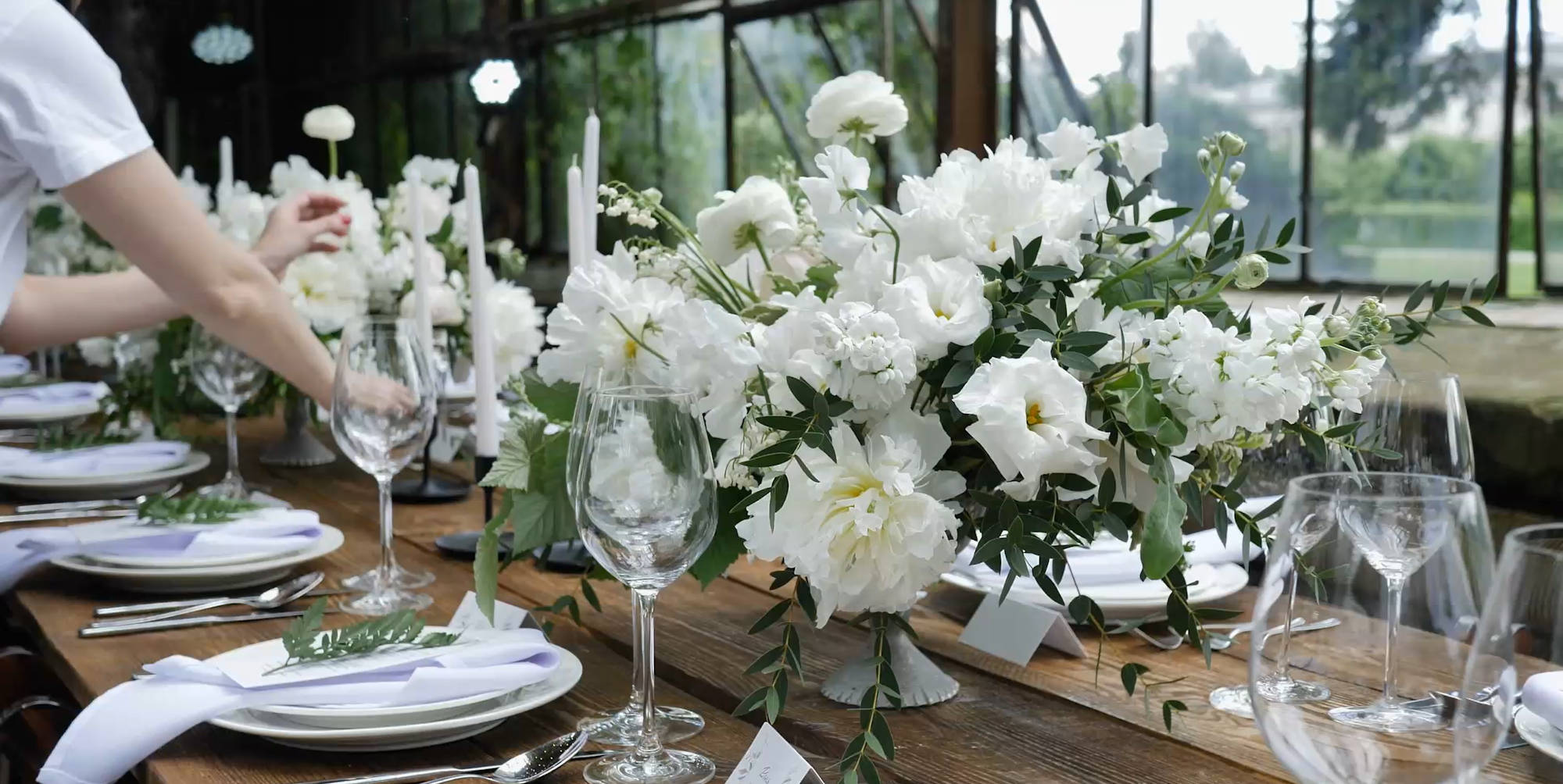 Borden voor het eten, glazen voor de drankjes, bestek om het op te eten. Logisch.